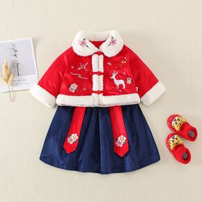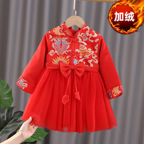 婴儿汉服裙女童连衣裙2021冬季加绒中国风唐装裙超...