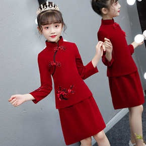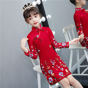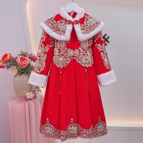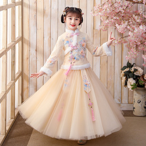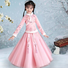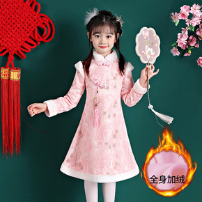中国风女童旗袍袄裙拜年表演加绒加厚礼服冬装儿童长裙...