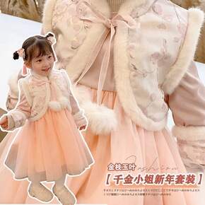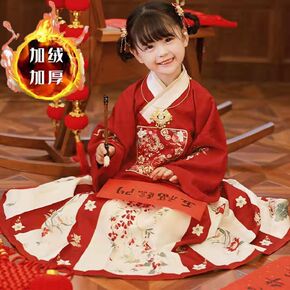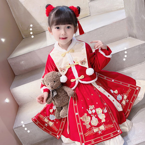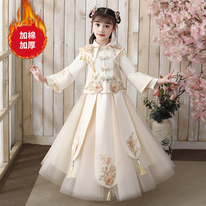 儿童汉服加绒加厚女童中国风拜年服新年唐装小孩仙冬装...