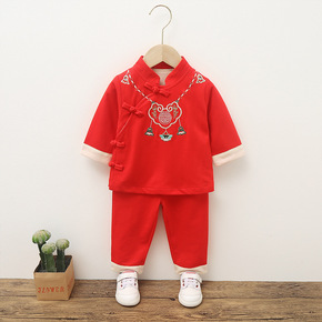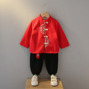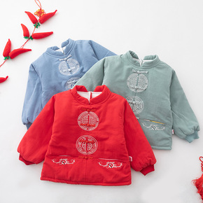 儿童过年喜庆衣服女童红色棉袄男宝拜年服旗袍唐装冬加...