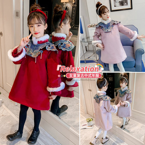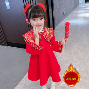 女童旗袍冬装加厚长袖中国风儿童唐装公主裙新年装中式...