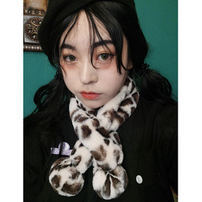 配饰爆款交叉毛球毛绒冬季围巾秋冬款豹纹安哥拉毛毛围...