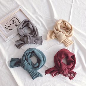 韩版糖果色儿童针织围巾秋冬保暖纯色男女童凹造型宝宝...