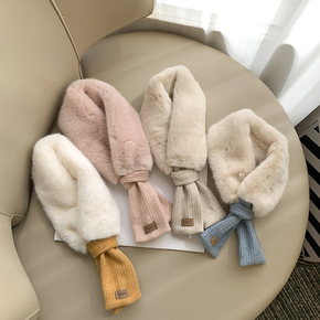 韩版秋冬新款简约纯色毛毛拼接儿童围巾宝宝保暖毛绒围...