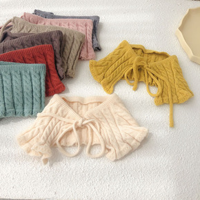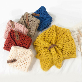 儿童皮标披肩针织镂空披肩 宝宝围脖冬季针织保暖披肩...