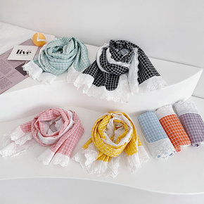 萌宝可爱围巾 韩版时尚新款双层蕾丝三角巾 男女童印...