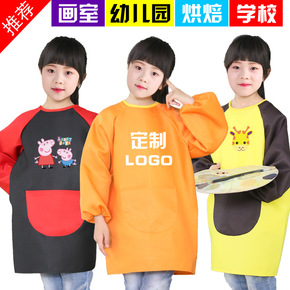 儿童围裙logo印字画画衣幼儿园中大童宝宝绘画班罩...