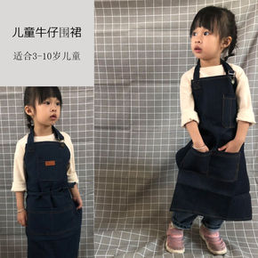 儿童围裙画画韩版亲子牛仔时尚男童女童围衣幼儿园小孩...