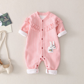 婴儿连体衣秋款可爱爬服新生外出衣服秋季男女宝宝双层...