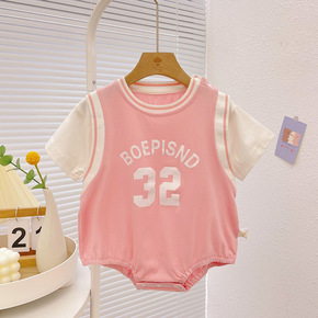 婴儿夏装吊带哈衣可爱超萌女宝宝无袖包屁衣爬爬服薄款...