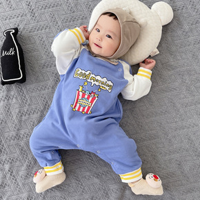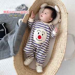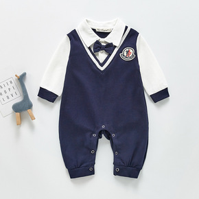 网红婴儿衣服春装男宝宝连体衣春秋可爱洋气百天外出哈...
