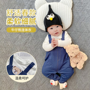 新款婴儿连体衣春秋可爱超萌洋气牛仔宝宝衣服春装哈衣...