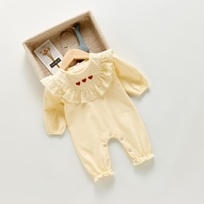 女宝宝衣服春秋款连体哈衣婴儿洋气长袖花边领爬服新生...