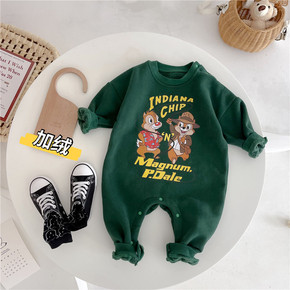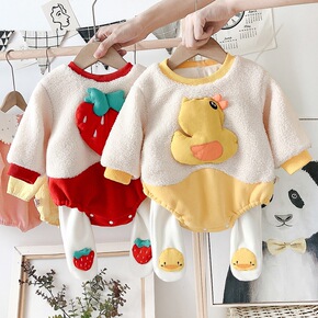 婴幼儿连体衣2020韩版秋冬套装加绒加厚保暖两件套...