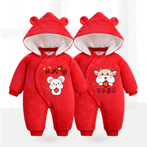 婴儿秋冬套装加厚满月宝宝女冬装外出抱衣男拜年衣服新...