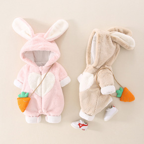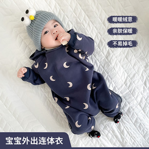 婴儿衣服秋冬装宝宝加绒连体衣冬天保暖衣套装外出冬季...