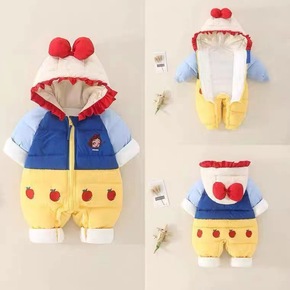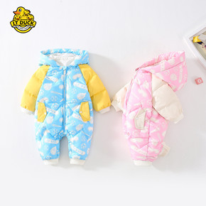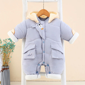 新款婴儿羽绒长爬服新生儿加厚哈衣宝宝保暖连体衣外贸...