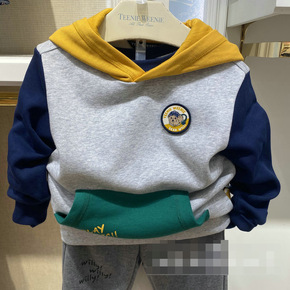 男童卫衣中大童2022秋冬新款儿童宽松连帽日韩风拼...