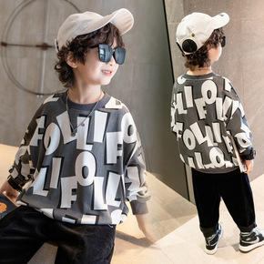 儿童男童秋装卫衣中小童洋气圆领百搭帅气套头休闲上衣...