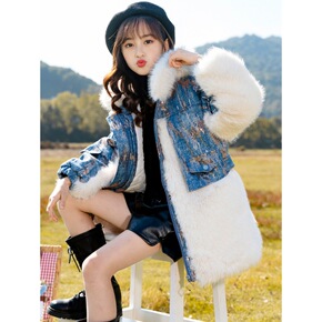 包邮女童羽绒棉服中长款2021新款洋气中大童童装加...