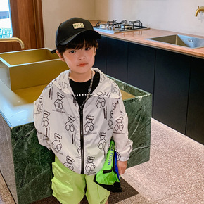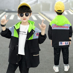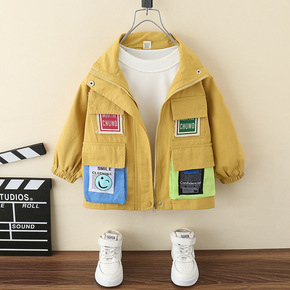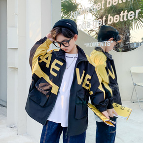 日系2021秋潮款儿童宽松休闲梭织外套男童中小童字...