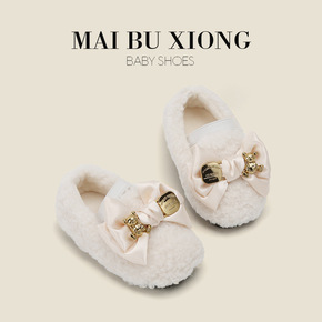 麦布熊女童宝宝学步鞋婴儿童板鞋冬款加绒休闲棉鞋男童...