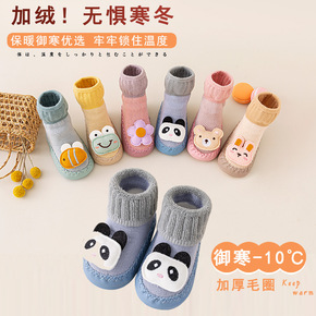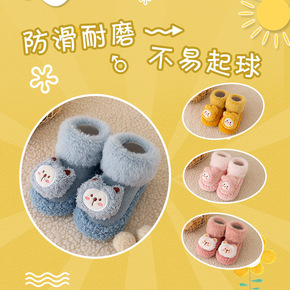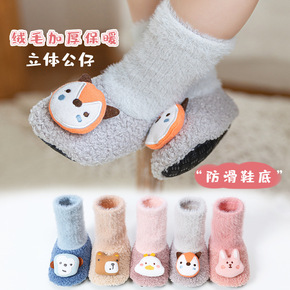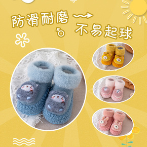 新品防滑儿童地板鞋袜冬季保暖毛圈婴儿袜子鞋可爱公仔...