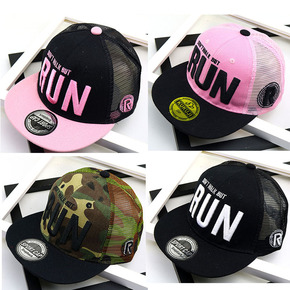 A949韩版儿童网帽 棒球帽刺绣字母RUN遮阳帽 ...