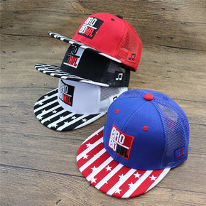 嘻哈网眼棒球帽 新款儿童平沿帽 个性条纹五角星字母...