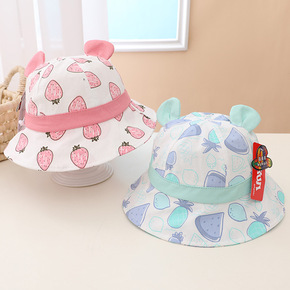 外贸印花水果渔夫帽儿童春夏天新款遮阳盆帽女外贸童帽...