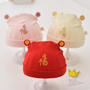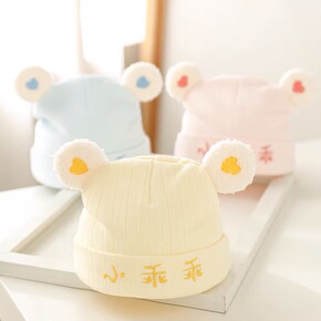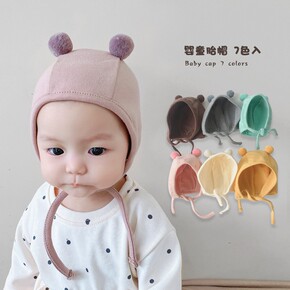 一潘 婴儿帽子春秋薄款韩版可爱绑带新生儿宝宝针织帽...