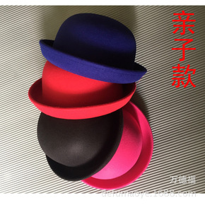 2018英伦圆顶卷边女士小礼帽 韩版复古亲子毛呢帽...