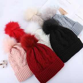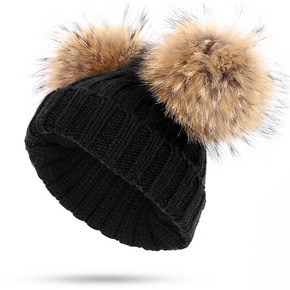 跨境专供儿童毛球毛线帽冬季保暖针织帽子貉子毛球男女...
