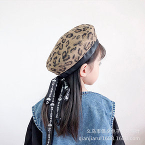 海军风贝雷帽春秋日系毛绒蓓蕾帽韩版女童画家帽儿童复...