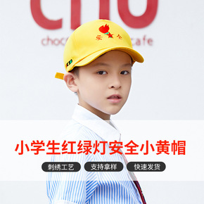 学生小黄帽刺绣红绿灯棒球帽小学校幼儿园儿童户外运动...