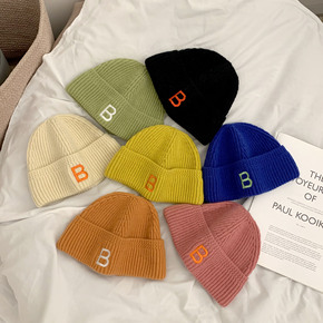 2022跨境热卖毛线帽带毛球针织帽子纯色保暖冬季针...