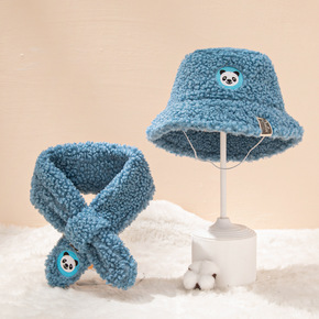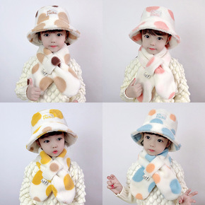 跨境新款摇粒绒保暖儿童渔夫帽围巾套装 现货创意贴标...