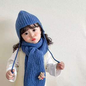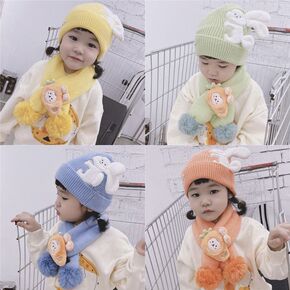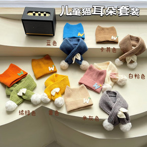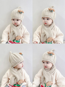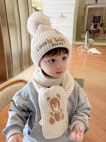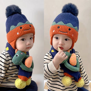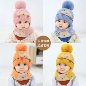 宝宝帽子围巾套装儿童秋冬季男童卡通毛线针织护耳帽女...