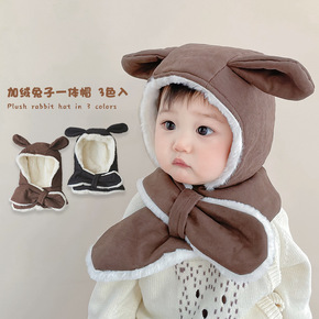 秋南儿童毛绒帽子围巾套装秋冬加绒保暖宝宝大耳朵毛绒...