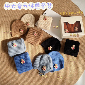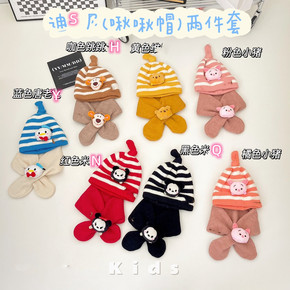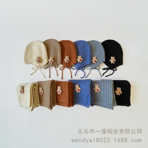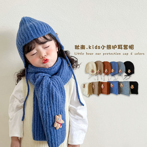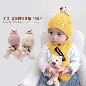 一潘 儿童帽子围巾套装秋冬新款加厚保暖可爱卡通小熊...