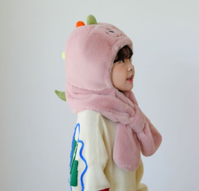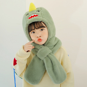 儿童卡通恐龙毛绒帽子围巾套装秋冬仿兔毛保暖宝宝防风...