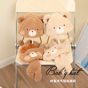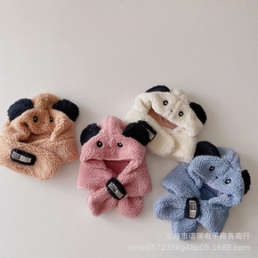 宝宝帽子秋冬儿童可爱超萌围巾套装羊羔绒护耳帽男童冬...