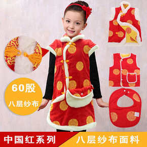 纯棉8层纱布宝宝马甲男童过年汉服婴儿喜庆新年儿童套...