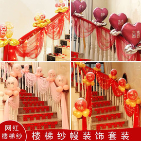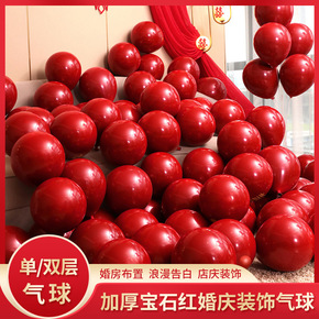 结婚气球套装浪漫婚房装饰布置石榴红单双层带喜字喜庆...