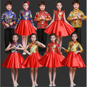 新款儿童圣诞元旦演出服装女童喜庆民族舞秧歌舞表演服...