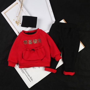 儿童加绒卫衣冬季复合绒中小童保暖套头衫拜年服宝宝过...