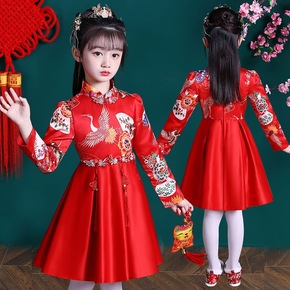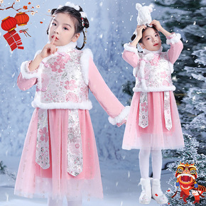 女童旗袍新年装中国风儿童女宝宝唐装冬季加绒加厚汉服...
