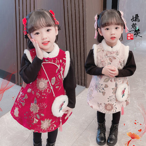 喜庆中国娃绣花儿童棉旗袍新年服装格格服冬马甲裙唐装...