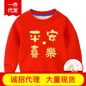 平安喜乐童装批发男童加绒卫衣一体绒女童儿童喜庆亲子...