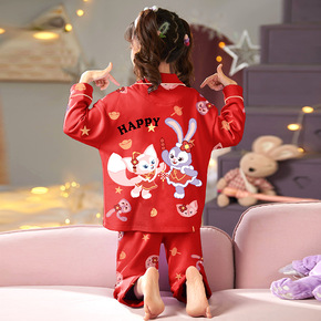 女童睡衣春秋季棉质长袖儿童中大童新年红色喜庆本命年...